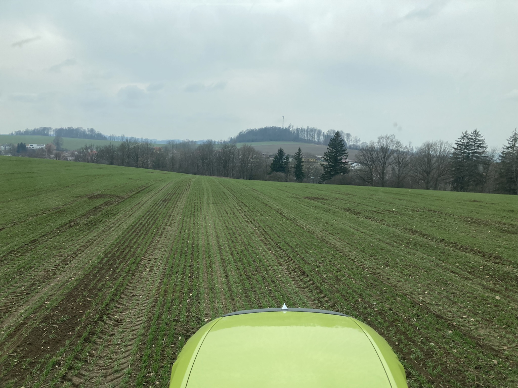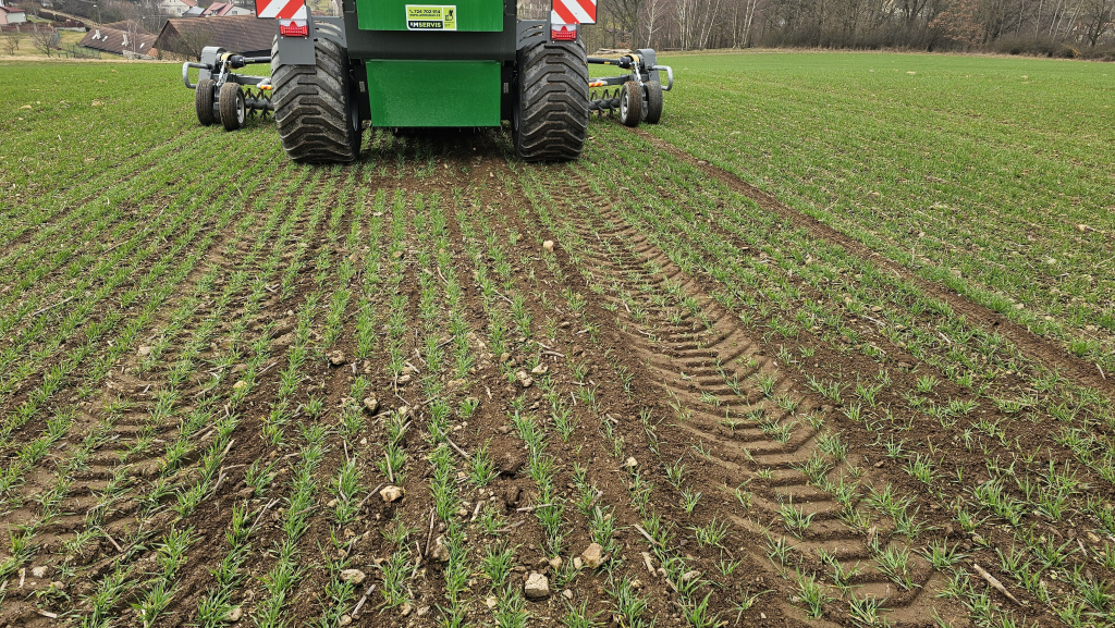 Na fotografiích je možné vidět jarní sběr kamene v zaseté ozimé pšenice s minimálním poškozením porostu.