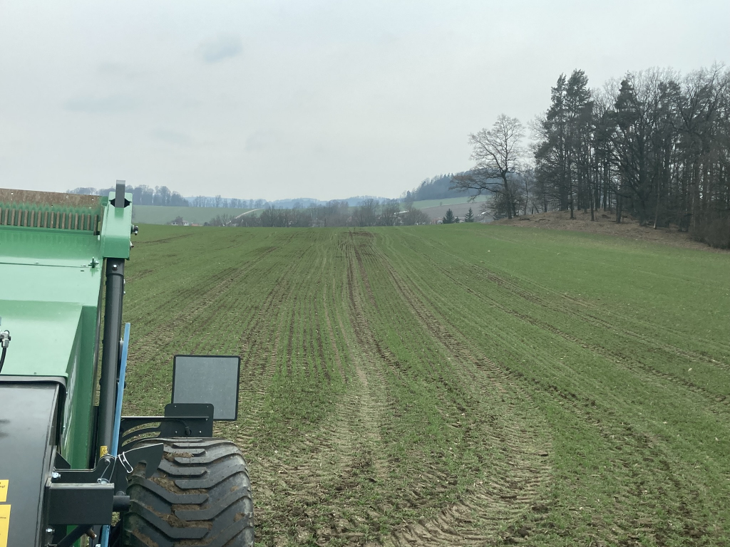 Na fotografiích je možné vidět jarní sběr kamene v zaseté ozimé pšenice s minimálním poškozením porostu.
